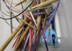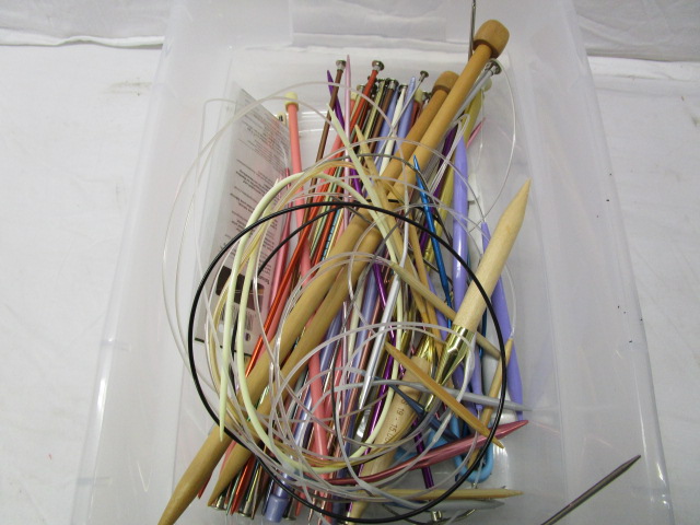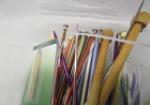 This assortment of knitting needles includes various sizes. The assortment includes wooden and metal needles. These items are in new and previously owned condition. Please preview.