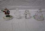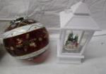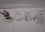 This collection of holiday decor includes a trio of Swarovski crystals figurines from the Christmas "Exquisite Accents" collection (snowman, Santa and tree), two pieces of Lenox (7-1/2" snowman and a glass light up winter scene), a 2" Gorham snowman, a "She Shed" light up ornament (this ornament does not light up as the battery compartment has been damaged) a ceramic snowman and a light up lantern style snow globe. Unfortunately each Swarovski crystal item has a chip. Other items are in These items are in previously owned, very good condition. Please preview.