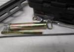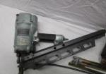 This assortment of tools includes a Hitachi 3-1/4" Strip Nailer (model 83A3), a plumber's "snake", a Shideli tool box (including eight tools of various sizes) and a manual level action grease gun. These items are in previously owned condition. Please preview.