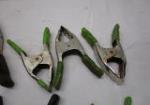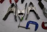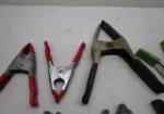 This selection of sixteen metal clamps includes fourteen spring clamps and two "C" clamps. These items are in previously owned condition. Please preview.