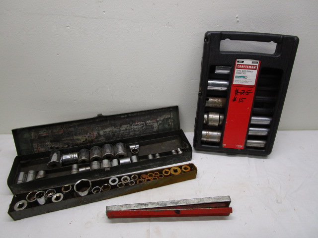This large selection of metal socket wrench heads includes a partial set of Craftsman deep impact socket heads. These items are in previously owned condition. Please preview.