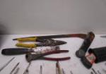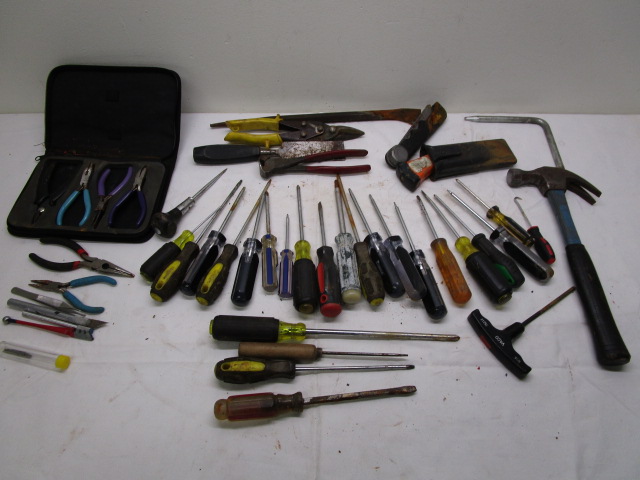 This large collection of tools includes screw drivers, clamps, a screwdriver, nippers, wire cutters and more. These items are in previously owned condition. Please preview.