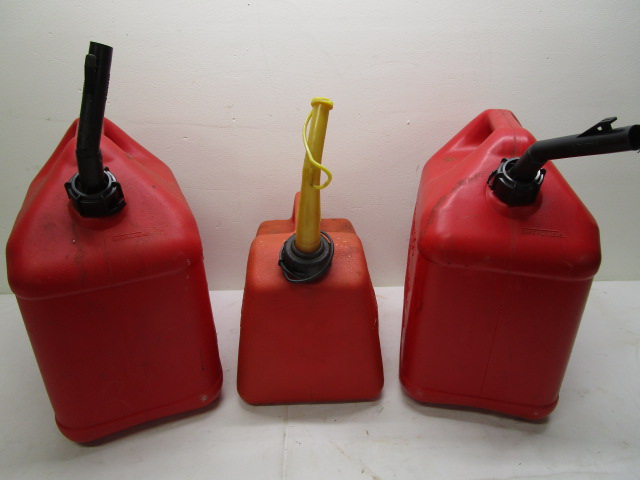 Three gas cans, one two and a half gallon and two 5 gallon sizes. All are in good usable condition, please preview.