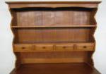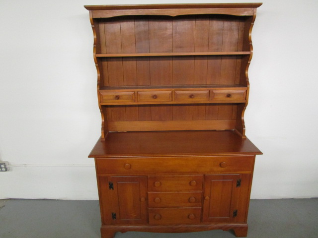 Beautiful Heywood Wakefield kitchen hutch featuring a dove tail design, two plate shelves over four small drawers over a large workspace over a large drawer over three small drawers and two additional storage areas. This item measures 54"W X 20-1/2"D X 77-1/2"H. This item is in previously owned, very good condition. Please preview.