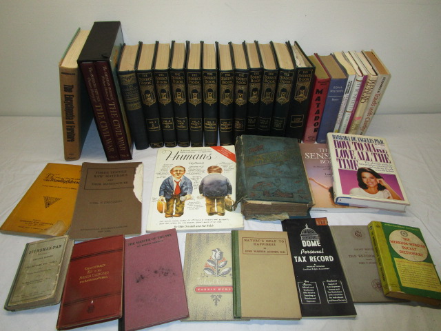 This collection of twenty nine vintage hard cover books and four paperback books include the following titles: fourteen editions of "The Source Book" set, "The American Language", "The Master of The Inn", "Nature's Help To Happiness", and more. These items are in previously owned condition. Please preview.