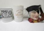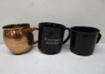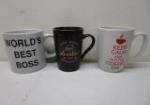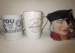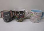 This selection of twelve coffee cups/mugs includes a black enamel camping cup, a vintage ceramic/metal collectible "Toby" mug, a Tag brand elephant mug and more. These items are in previously owned condition. Please preview.
