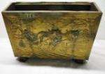This lovely antique embossed brass magazine box features a colonial style scene depicting a farmer plowing his field. This item is in previously owned condition. Please preview.
