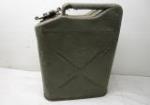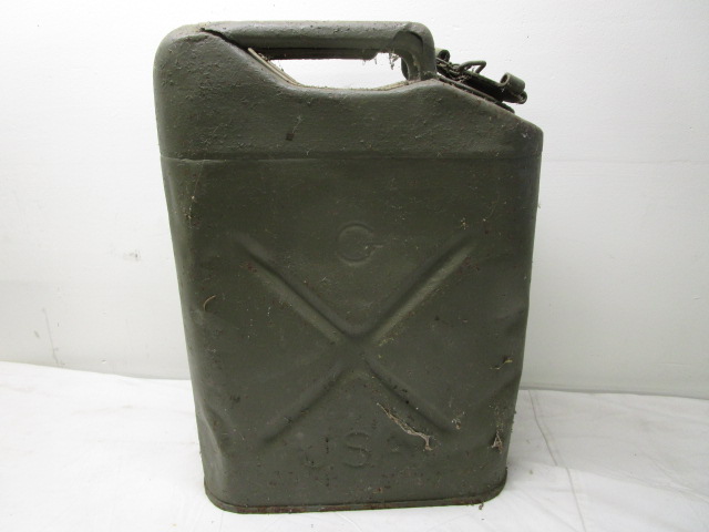 This vintage, military "Jerry Can" features a 5-gallon capacity, heavy-duty metal construction and the distinctive "X" pattern stamped that provides extra reinforcement. This item is in previously owned, vintage condition. Please preview.
