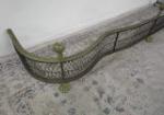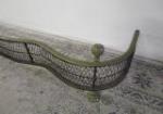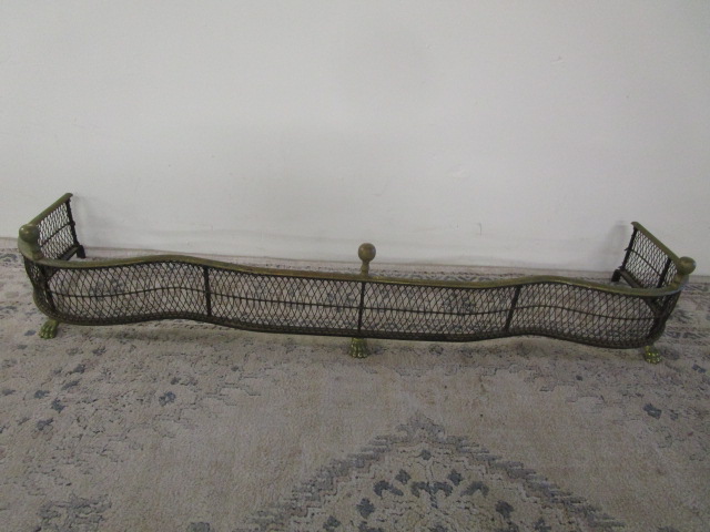 This gorgeous antique serpentine fireplace hearth fender features a Georgian style, brass top, brass ball finials, a wire mesh body and claw feet. These items were used to keep logs from falling out of the fire place and onto the floor. This item measures 54-1/2"W X 14"D X 9-1/2"H. These items are in previously owned, good condition. Please preview.