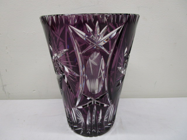 This absolutely stunning 17" Fenton, Bohemain engraved Amethyst vase features a wheel cut design. This item is in previously owned, very good condition. Please preview.