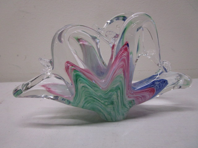 This stunning 4" multi-color vintage, 4" Murano hand blown art glass napkin holder is in previously owned, very good condition. Please preview.