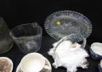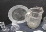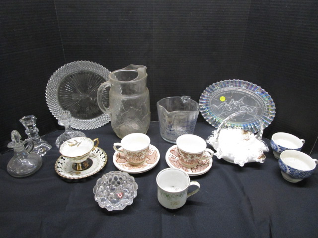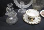 This miscellaneous collection of porcelain/glassware includes a Fenton Silver Crest basket, a vintage Anchor Hocking "Miss America" glass plate, a vintage Orrefors crystal candle holder and more. These items are in previously owned condition. Please preview.