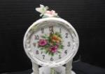 This trio of home decor items includes a 5" Murano multi-faceted lead crystal vase, a vintage Avon white porcelain mantle clock (featuring humming birds and a dome style top), and an 8" Fenton Silver Crest Ruffled Edge Bowl. The Murano vase does have some surface cracks on the bottom. Additional items are in previously owned, good condition. Please preview.