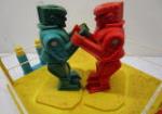 Walk down memory lane with this "Rock 'Em Sock 'em Robots" game. This item is in previously owned condition. Please preview.