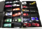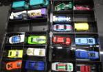 This large assortment of sixty highly collectible Hot Wheels and Matchbox die cast, and metal/plastic cars. These cars are in Hot Wheels storage cases. These items are in previously owned condition. Please preview.