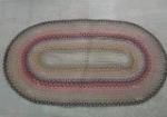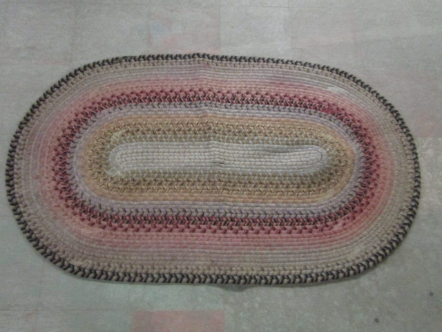 This lovely 44" X 26" braided rug features muted colors. There are a couple of areas in need of restitching, otherwise it is in used, good condition. please preview.