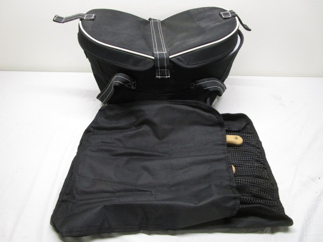 This selection of food preparation/storage items includes an "Oniva" brand "Picnic Time" soft sided cooler and a trio of chef's knives including a Clyde Cutlery Corp. brand knife, a Utica Cutlery Co. Kutmaster knife and a Flint brand stainless knife. These knives come in a storage bag. These items are in previously owned condition. Please preview.
