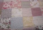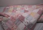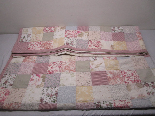 This lovely hand made 86" X 84" pink patchwork quilt is in previously owned, good condition. Please preview.