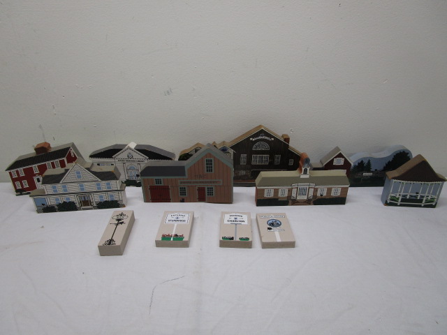 This nice assortment of eleven collectible "Cats Meow" wooden souvenir pieces includes items from around Lunenburg, Ma. and Charlton, Ma. Also included is a similar item showcasing the Publick House Restaurant in Sturbridge, Ma. These items are in previously owned condition. Please preview.