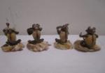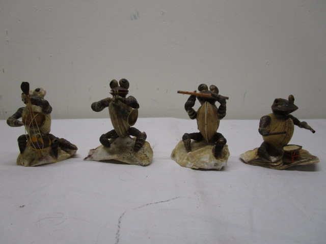This set of vintage seashell frogs playing instruments in from Japan and measure 3" tall. The are in very nice condition. Please preview.