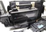 This box of vintage photographic/video equipment includes an Ambico All-in-one Video Transfer system, a Cpal Sound 200XLSuper 8mm video movie camera, a Keystone 8mm Zoom Reflex movie camera, a Magnavox VHS Movie maker camcorder, plus so much more. These items have not been tested. Please preview.