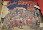 This vintage Tin Litho Wyandotte Toy Company Shooting Gallery Game comes with its windup key. Has original box but the cover is in pieces. Please preview.