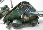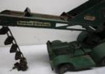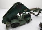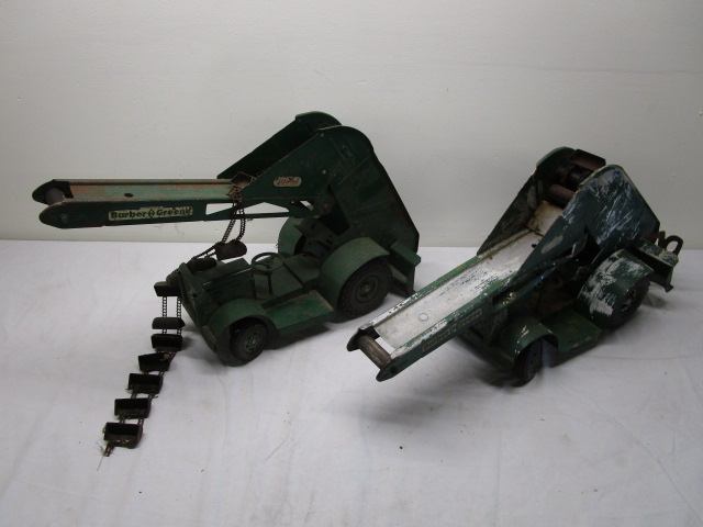 These Doepke Model Toys Barber-Greeene Bucket loaders measure 23" long x 13" tall. One of the vehicles has some white paint on it while the other one needs to have its buckets reattached. Please preview.