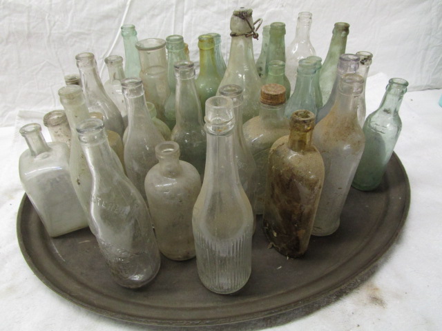 This collection of thirty-nine antique/vintage bottles range in size from 5" to 12" and vary in color. These bottles "Barn Finds". They are in previously owned, vintage condition. Please preview.